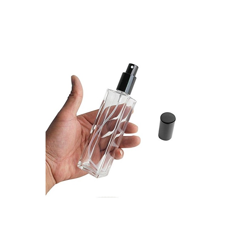 1Pcs Squared Transparent Glass Empty Perfume Bottle Fine Mist Spray Container Cologne With Spray Applicator And Black Lid size 50ML/1.7oz