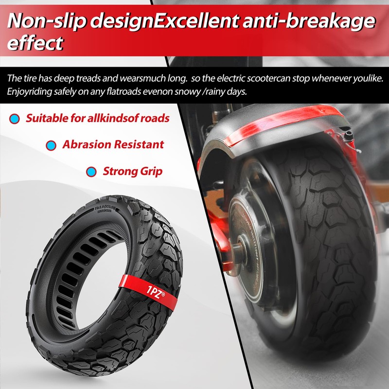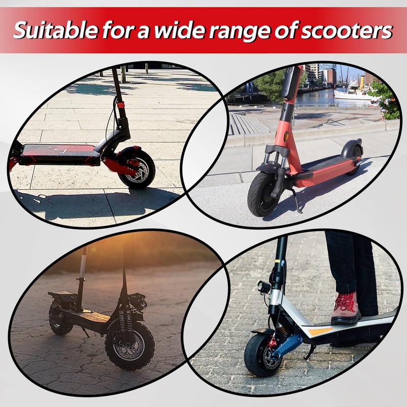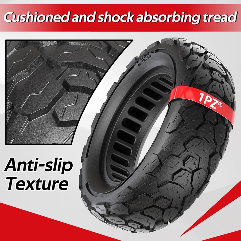 - The solid scooter tire offers better shock absorption and obstacle-passing ability, easily going over speed bumps and effectively coping with rough roads. It provides excellent traction and grip, allowing you to be confident and in control while riding.