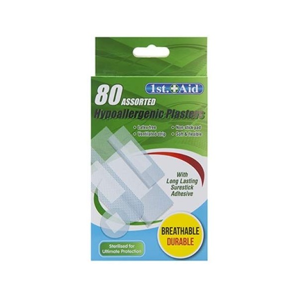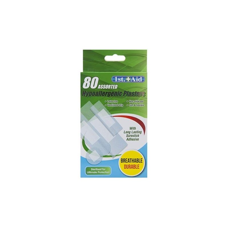 1st Aid - Assorted Hypoallergenic Plasters - Pack of 80 Assorted Sizes Ideal for Home Office