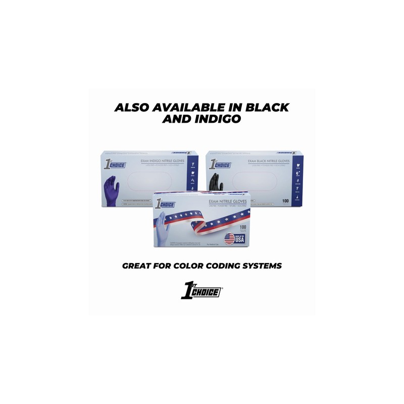 1st Choice 3 mil Nitrile Gloves, Made in the USA, Nitrile Disposable Gloves, Indigo, Small Box of 100
