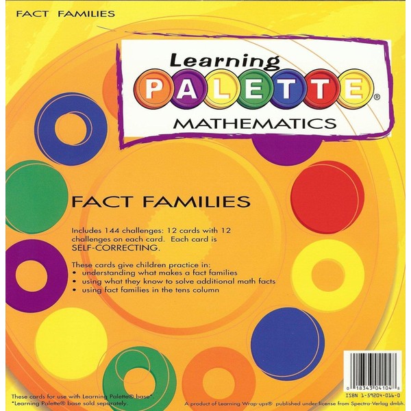 - FUN LEARNING FOR YOUTH: Learning Wrap-Ups presents 1st Grade Math Fact Families Learning Palette. This set includes 144 challenges (12 cards with 12 challenges per card).