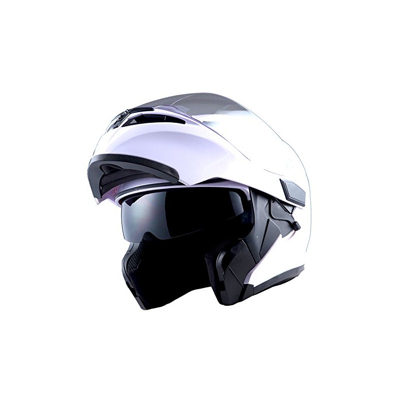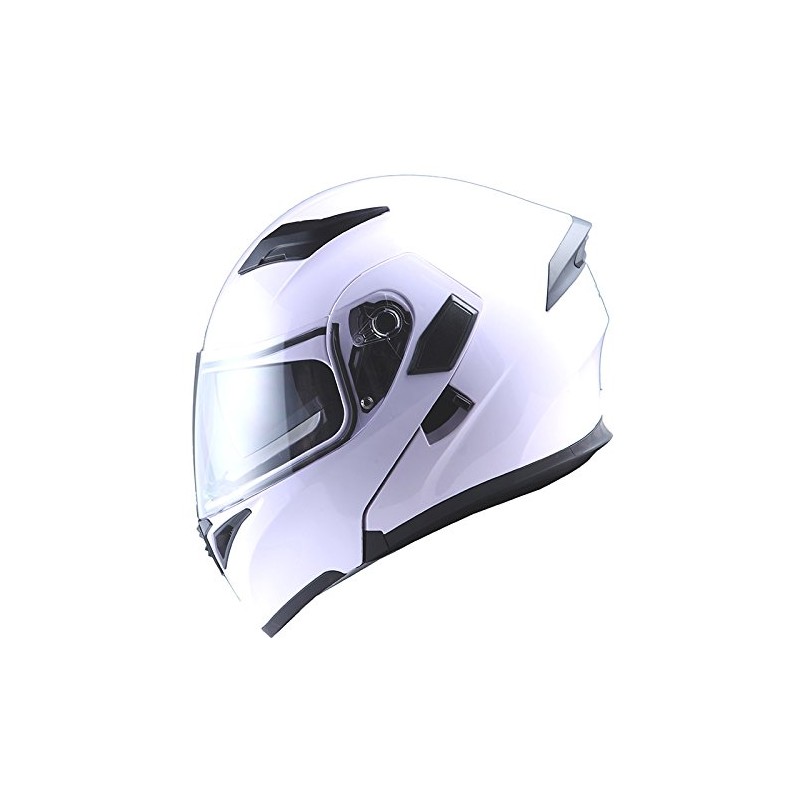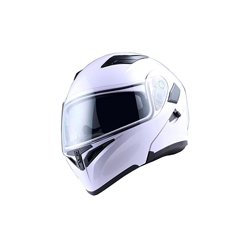 1Storm Motorcycle Modular Full Face Helmet Flip up Dual Visor Sun Shield: HB89 Glossy White