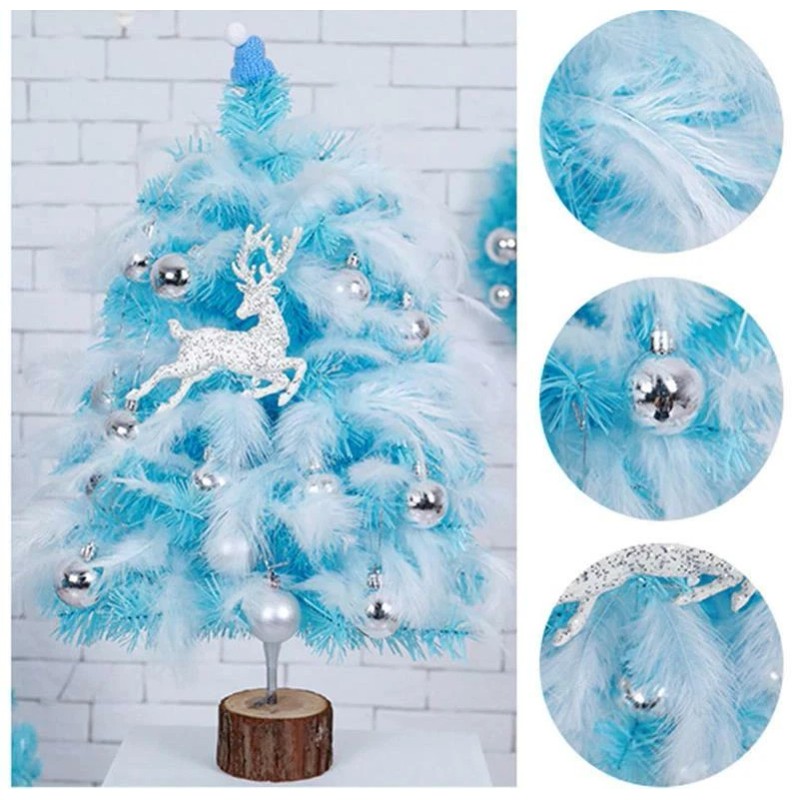 1to3 Blue Mini Christmas Tree w/Feather Ornament Cedar Home Office Decor Decoration