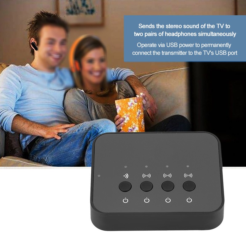 1、It sends the stereo sound of the TV to two pairs of headphones simultaneously. 2、Operate via USB power to permanently connect the transmitter to the TV's USB port. 3、The portable battery allows up to 10 hours of use between charges and is suitable for use with a tablet. 4、Strong connectivity. You can quickly reconnect as needed. 5、Simply through the headphone interferce, fiber output or composite audio output. 6、It wirelessly transmits audio to your headset and partners via cable without the need for a splitter.