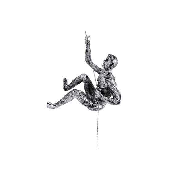 1x Antique Silver Climber Right-handed Handmade Climbing Man with Wire Rope Wall Mounted Art Sculpture