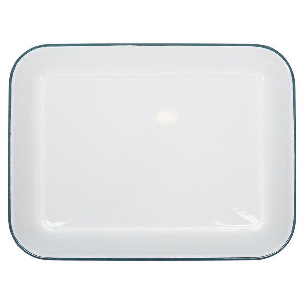 1x Green 34cm x 26cm White Rectangle Enamel Baking Tray - Kitchen Bakeware Tin Oven Bake Roasting Cooking Sheet Trays - by Argon Tableware