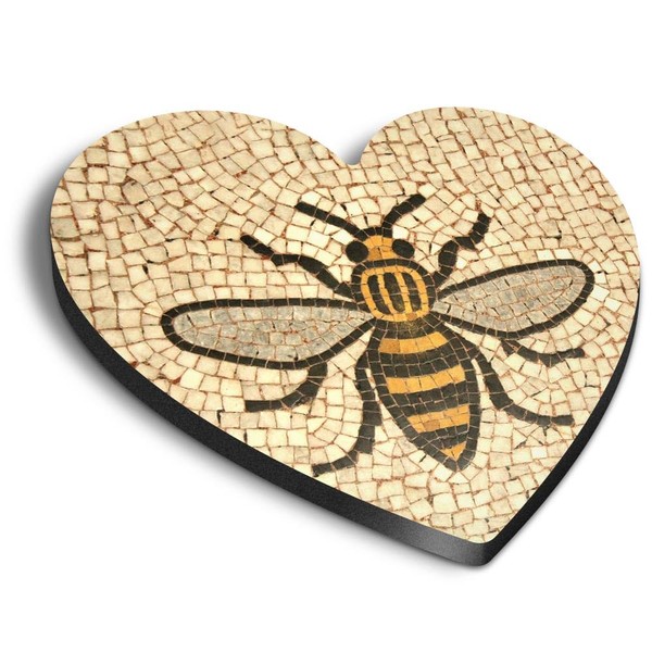 1x Heart MDF Magnet 6cm - Manchester Bee Mosaic Pattern - Fridge Locker Office Whiteboard Toolbox #51408