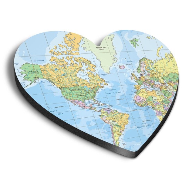 1x Heart MDF Magnet 6cm - World Map Globe Earth - Fridge Locker Office Whiteboard Toolbox #170942