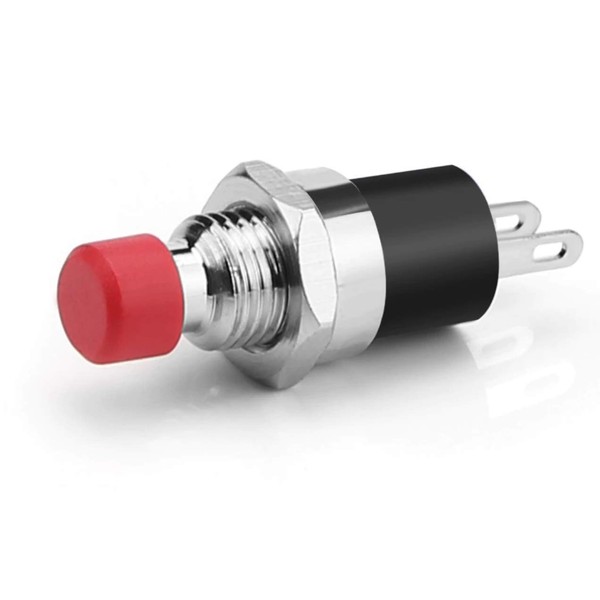Micro mini push button switch 12 V momentary push button switch 2 pin material: stainless steel colour silver button colour: red switching capacity: 2 A 36 V hole size: 7 mm size: approx. Length: 28 mm Width: 9.5 mm Operation Type: Push It-On, Release