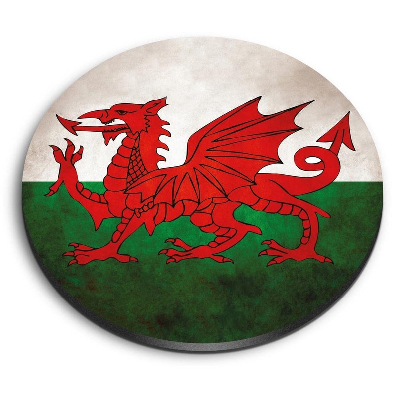 1x Round MDF Magnet 6cm - Distressed Wales Welsh Dragon Flag - Fridge Locker Office Whiteboard Toolbox #56016