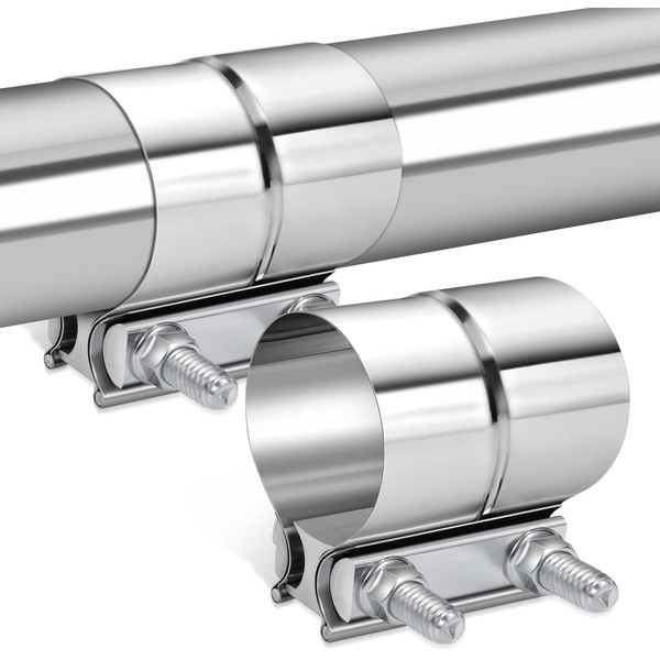 2.0 Inch Exhaust Clamp, Lap Joint Band Clamp for Pipes Catalytic Converters, Mufflers Clamp Stainless Steel 2PCS