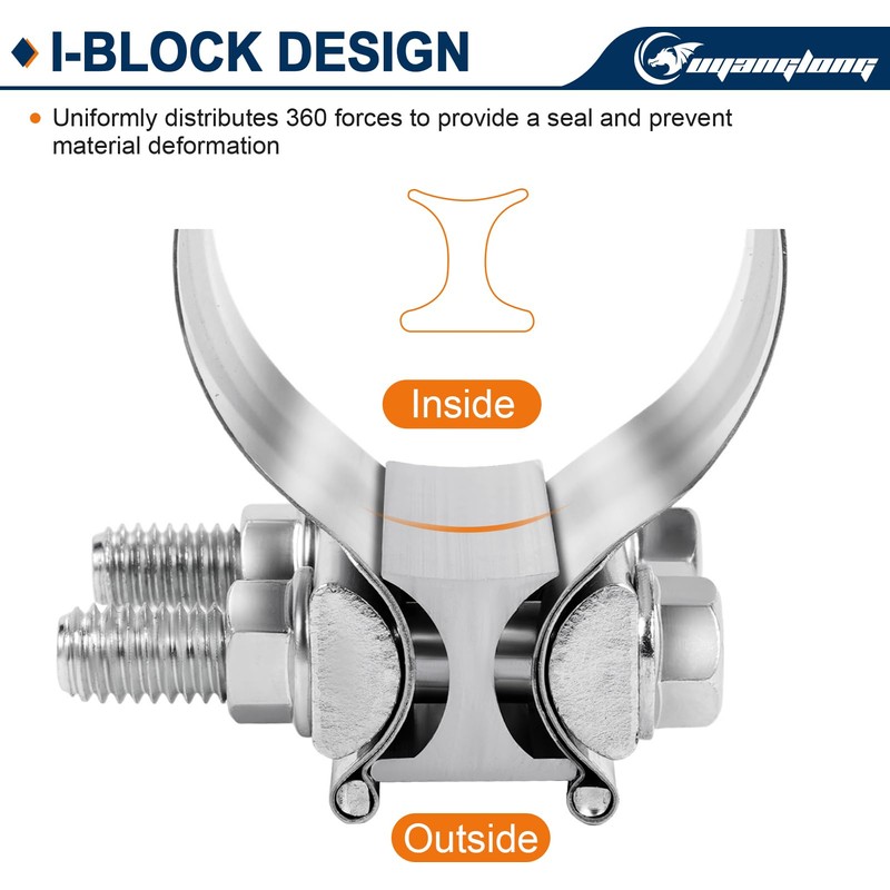- ✅I-Block design of the exhaust band clamp distributes 360 forces evenly, providing a seal and preventing material deformation.