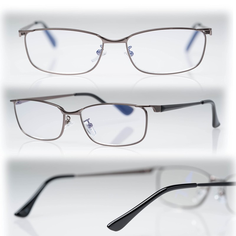 - マットライトガンメタルとブラックのコンビがシャープです。 ブルーライトカットレンズを使用しています。 おしゃれな専用ソフトケース付きです。