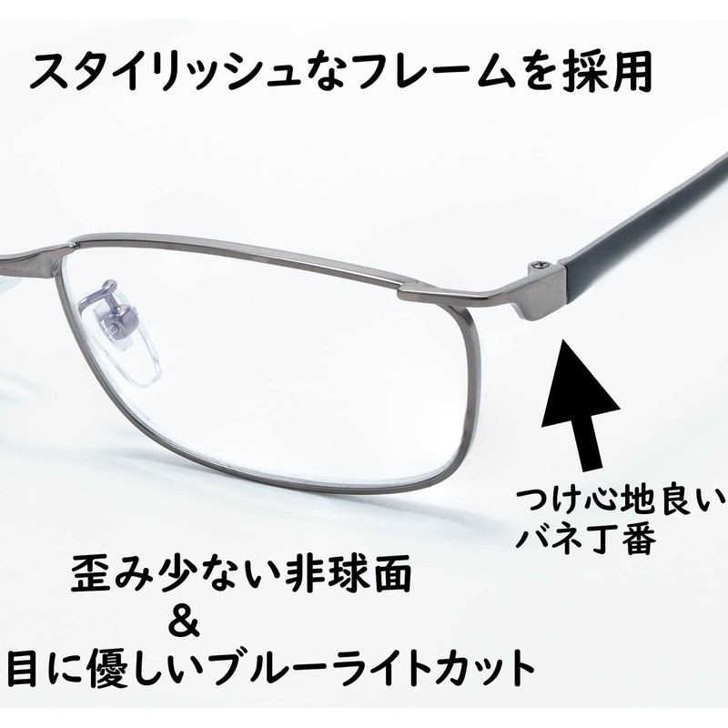 老眼鏡 メンズ おしゃれ フレーム ライブラリースタイル 非球面レンズ ブルーライトカット 軽量 スクエア メタル 度数 +2.00 497220