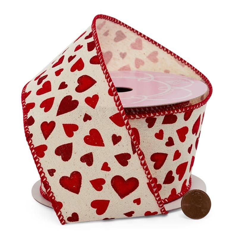 2 1/2" X 10 Yards Bunches of Hearts Wired Ribbon