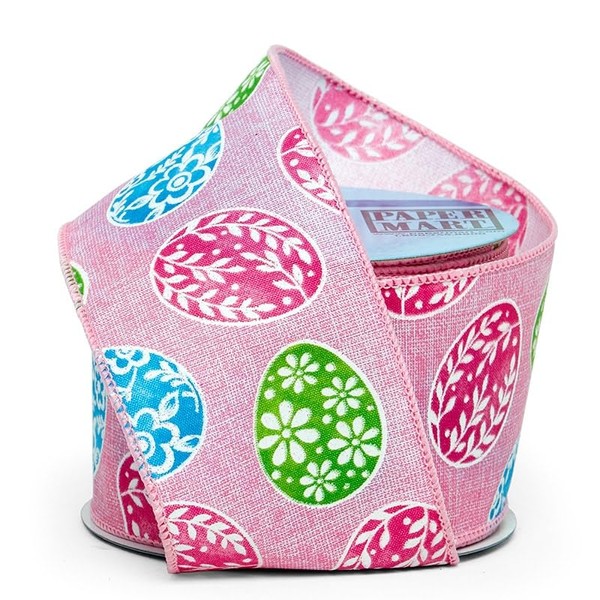 2 1/2" X 10 Yards Pink Sparkling Easter Eggs Wired Ribbon