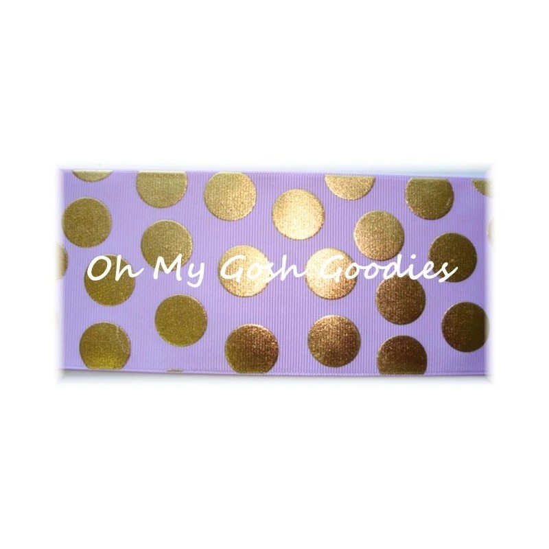 2 1/4 ORCHID GOLD METALLIC JUMBO DOTS FOIL GROSGRAIN RIBBON 4 CHEER TIC TOC BOW