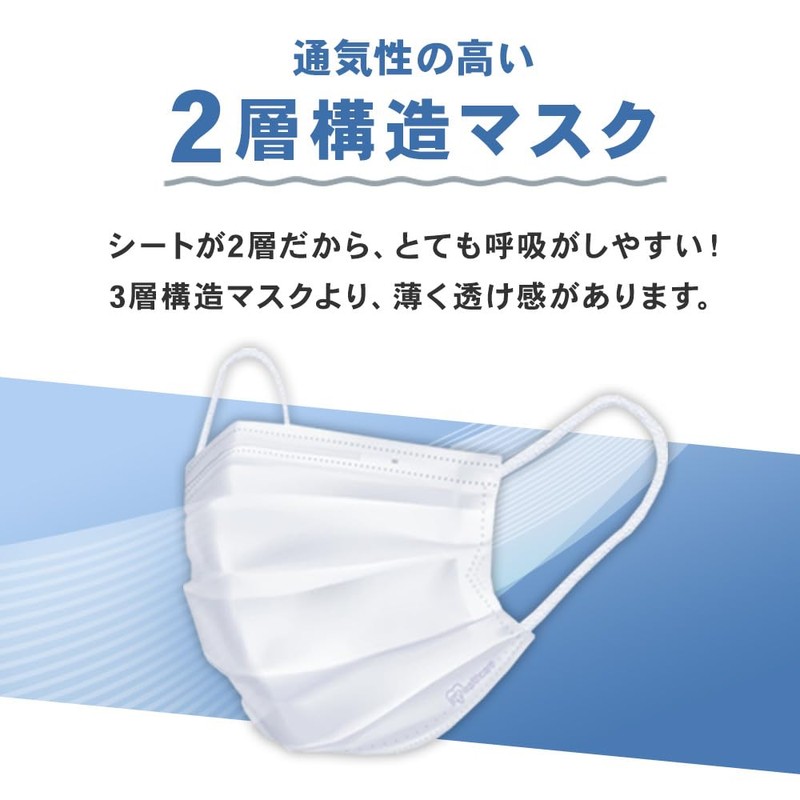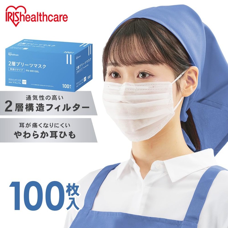 [アイリスオーヤマ] 2層プリーツマスク 100枚入り ホワイト 不織布マスク 不織布 風邪予防 耳が痛くなりにくい 立体プリーツ 裏表が分かりやすい PN-WR100L