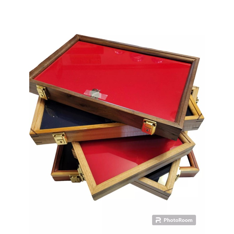 2-12" X 18" X 2" 's solid, CHERRY, WALNUT, MAPLE, OAK or CEDAR display case with foam . They are great quality showcases made in the USA. They have a brass lock and two keys included. Great for displaying that very special item or any item that will fit sells better in this case. It displays well behind glass, shows it off with class. Please state if you would like cherry, maple, oak or cedar. Buyer pays postage. Available in oak, cherry, cedar and maple. I usually have walnut but is backordered righht now.
