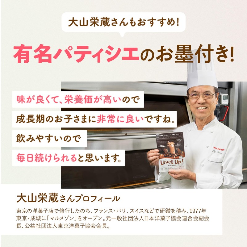 - 【人工甘味料不使用】後味も甘さは残ることなくすっきり。簡単で美味しい レベルアップ は子どもが楽しく飲んでくれること間違いなしです!「成長期のうちに始めてよかった!」「美味しく飲める!」「 レベルアップ を飲んでもっと頑張れそう!」嬉しいお声もたくさんいただいています!