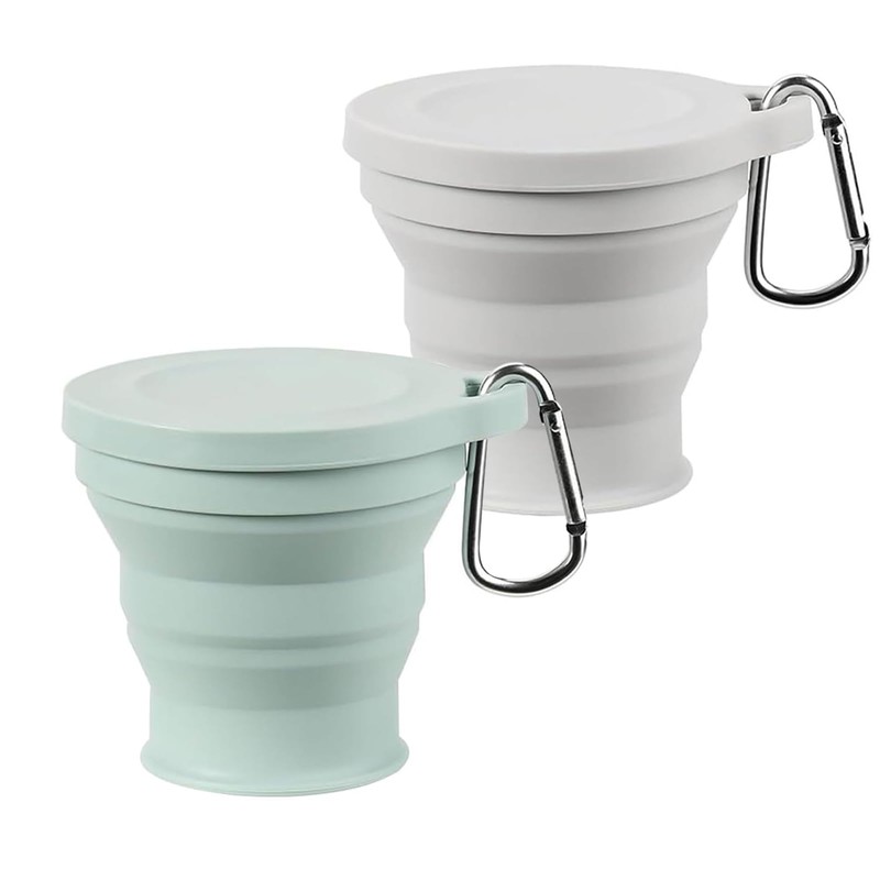 - 【製品仕様】:折りたたみコップは、180mlの液体を収容することができます,数量:2個入り,グリーン+グレー。