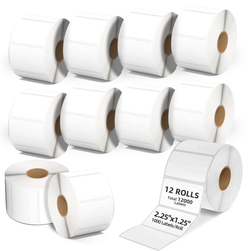 2.25" x 1.25" Direct Thermal Labels, 1000 Labels/Roll, Commercial Grade, Permanent Adhesive, Compatible with Most Thermal Printers(12 Rolls)