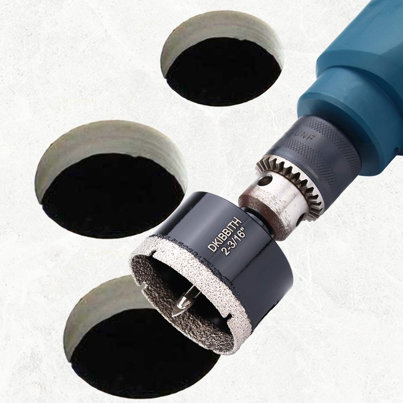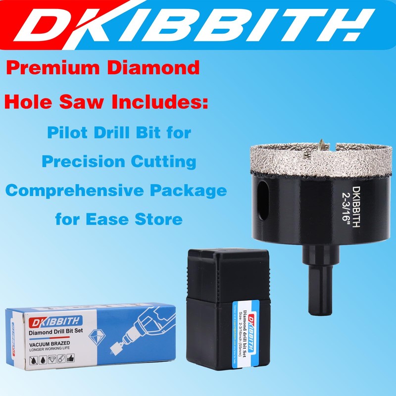 - - Premium Quality & Durable: The 2-3/16 Inch Diamond Hole-Saw Bits feature a diamond-tipped design capable of cutting smoothly through ceramic, porcelain tile, granite, stone, glass bottles, and more. With a pilot drill bit and diamond height of 3/8" and a total length of 2-1/2", these diamond hole saw bits are engineered for precision.
