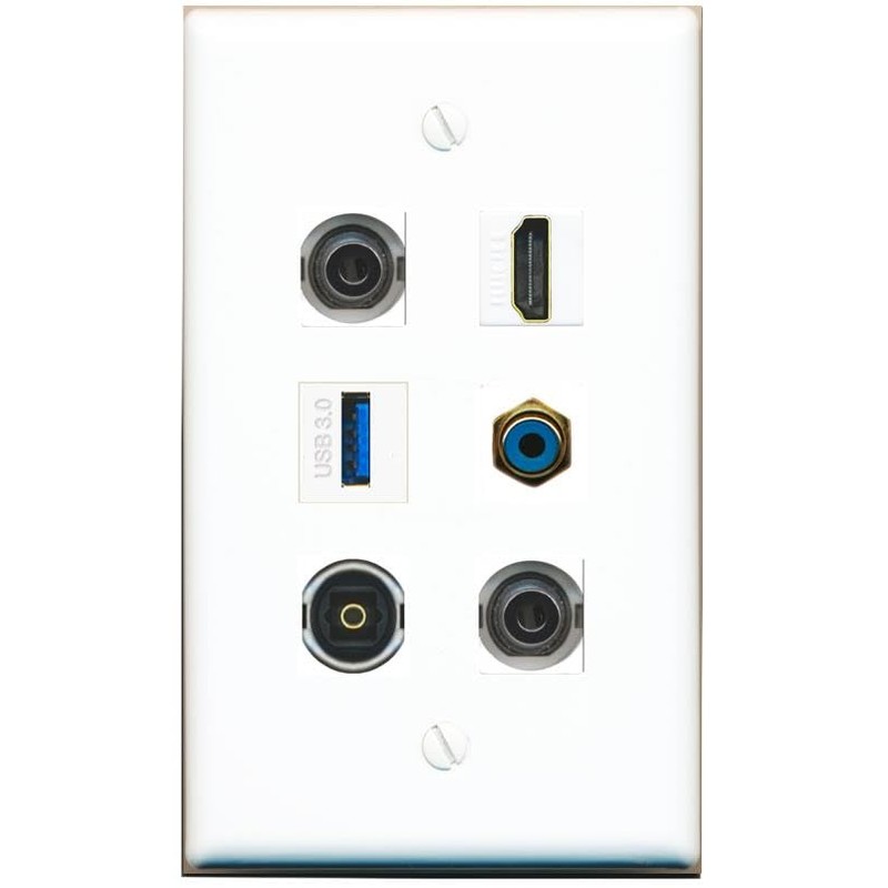 2 3.5mm HDMI RCA-Blue TOSLINK USB-3 Flat/Solid Wall Plate [White]