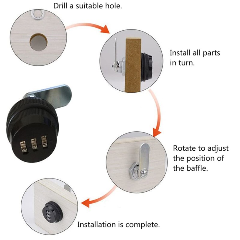 Convenient installation: digital combination drawer lock is very easy to install. You only need to drill a suitable hole and then install all parts in the order before using without too many auxiliary tools.