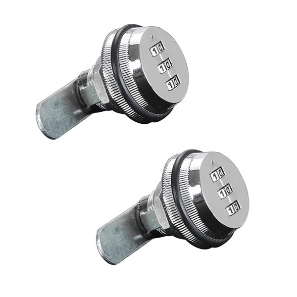 2 3-Digit Code Combination Lock, Zinc Alloy Mailbox Lock, Cam Lock, Without Key, for Cupboard, Letterbox, Drawer, Security Lock (Silver, 20 mm)