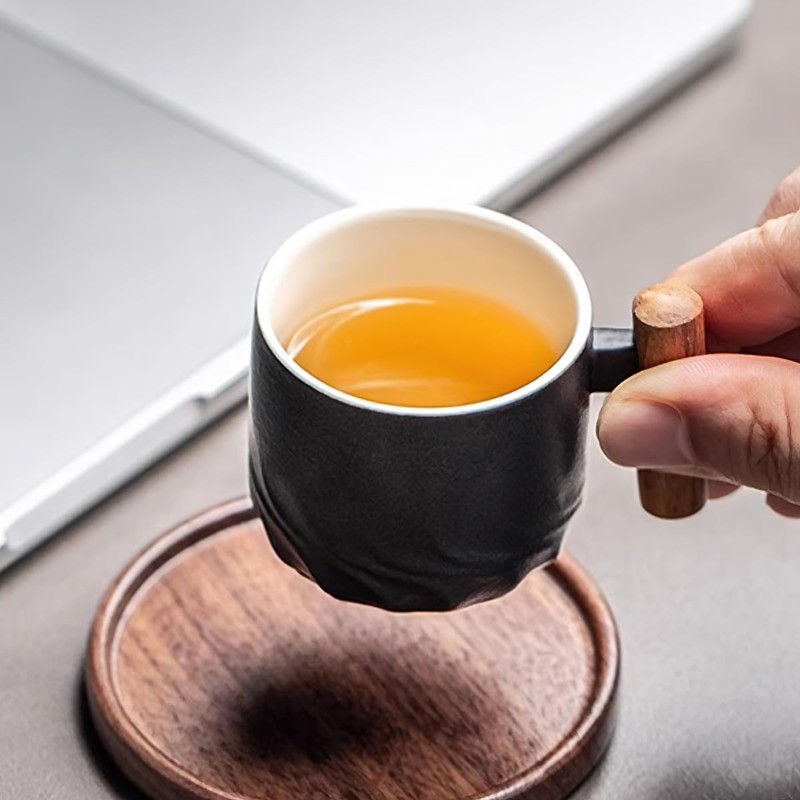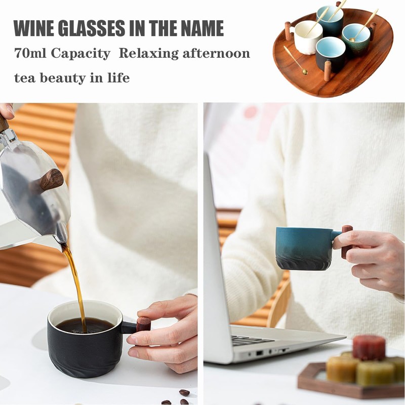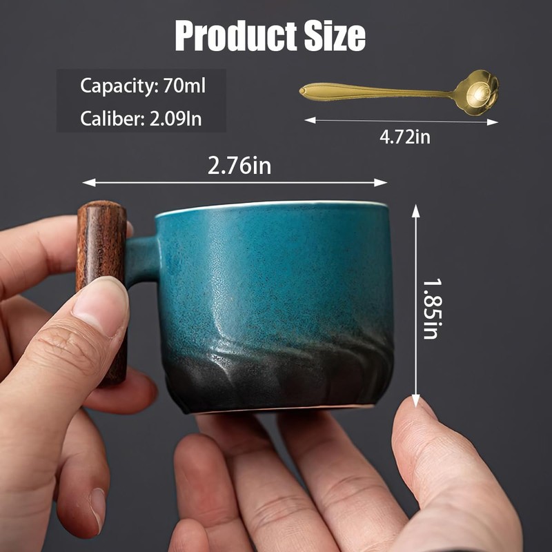 - 【High Quality Material】This coffee and tea cup is made of high-quality ceramic. Each small coffee cup is equipped with a wooden handle, which is smooth and easy to grip, providing a comfortable drinking experience.
