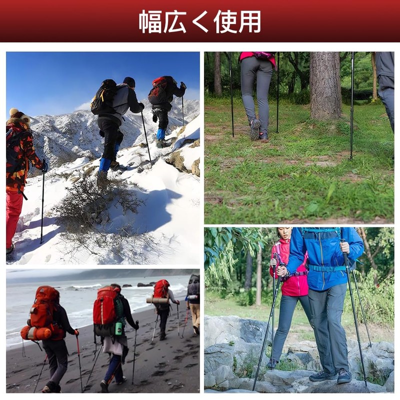- さまざまな地形に対応:トレッキングキャップ、バスケット、スノーバスケットの4種類のポール先端から選べます。登山からウォーキングまで幅広く使用できます。※お届けした商品に初期不良がある場合は、お気楽に出品者にご連絡ください。全額返金または交換のご案内をいたします。