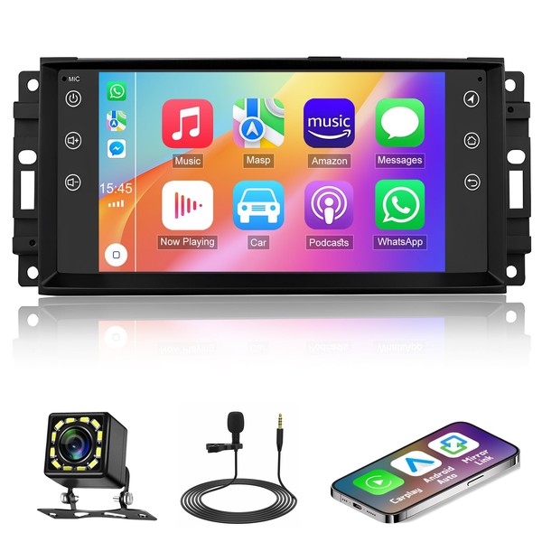 - 【Wireless Carplay & Wireless Android Auto & Mirror Link】Built-in wireless & wired CarPlay and Android Auto for superior voice-assisted control and easier access to your phone features, including music, navigation, calls, notification, messages and much more. For Dodg aftermarket head unit can be synced to the onboard screen via WiFi hotspot or the phone's original USB cable.