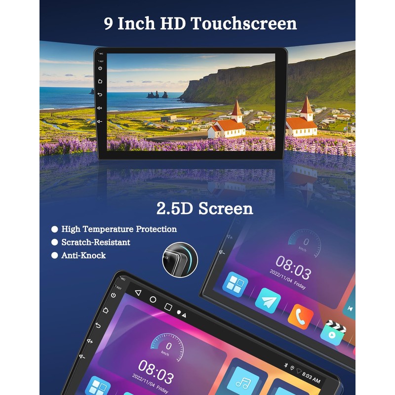 • 【Stereo Configuration & Applicable Car Models】Lastest Android system, 9 inch 2.5D 1080P HD touch screen with Split Screen Function to display two pages at the same time. 2GB RAM and 32GB flash memory, ensuring smooth and fast operation. This double din radio is perfectly suitable for 2013 2014 2015 2016 2017 2018 KIA Cerato K3 Forte stereo radio, and no need to purchase additional accessories