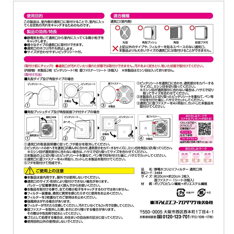 東洋アルミ 通気口用 静電ホコリとりフィルター 2枚入 3484