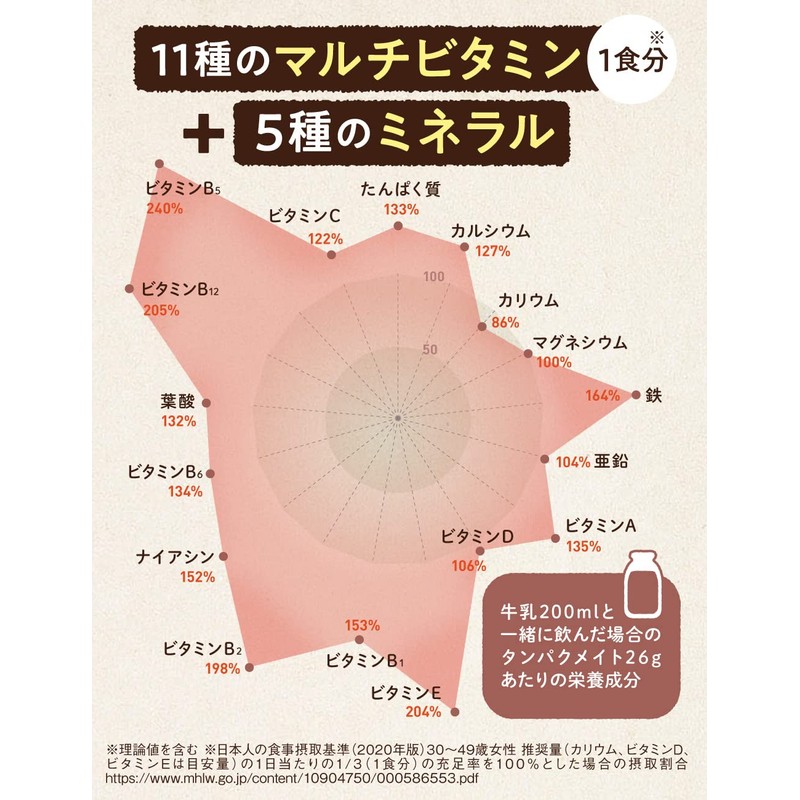 • 【マルチビタミン・ミネラル】牛乳と一緒に飲むことで美容や健康欠かせない11種の ビタミン・5種の ミネラル(カルシウム・カリウム・マグネシウム・鉄分・亜鉛)も同時に補えます。