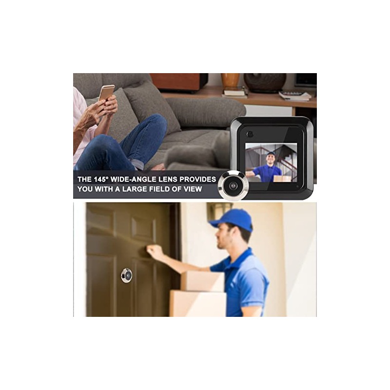 2.4 Inch Smart Door Viewer, TFT LCD Screen Display 0.3MP Peephole Viewer Door Camera Cat Eye Doorbel, 145° Wide Angle Camera Photo Recording