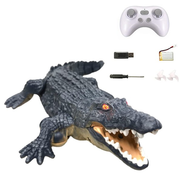 1、REALISTIC DESIGN: Our remote control crocodile boats have realistic shapes and textures, suitable for adults and children. It has a rechargeable design for easy use. The streamlined high‑fidelity body, flexible tail and double‑headed head bone allow it to swing freely underwater like a real person, bringing children unlimited dreams and fun. 2、EASY TO CONTROL: Our remote control crocodile boat is equipped with two motors that can be controlled in two speed modes. And the remote control boat has a built‑in water level sensor, and the engine will only start when it is on the water. 3、HIGH SIMULATION: the plastic tail can swing flexibly, just like a real crocodile floating freely in the sea. Like a real crocodile floating freely in the sea. you will like it. 4、REMOTE CONTROL: 40m distance control, forward/backward, turn left, turn right. Suitable for a variety of scenarios: swimming pools, water parks, bathtubs, etc. It s a gift for children. 5、