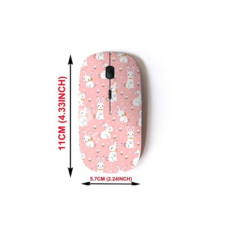 2.4G Wireless Mouse with Cute Pattern Design for All Laptops and Desktops with Nano Receiver - Cute White Bunnies
