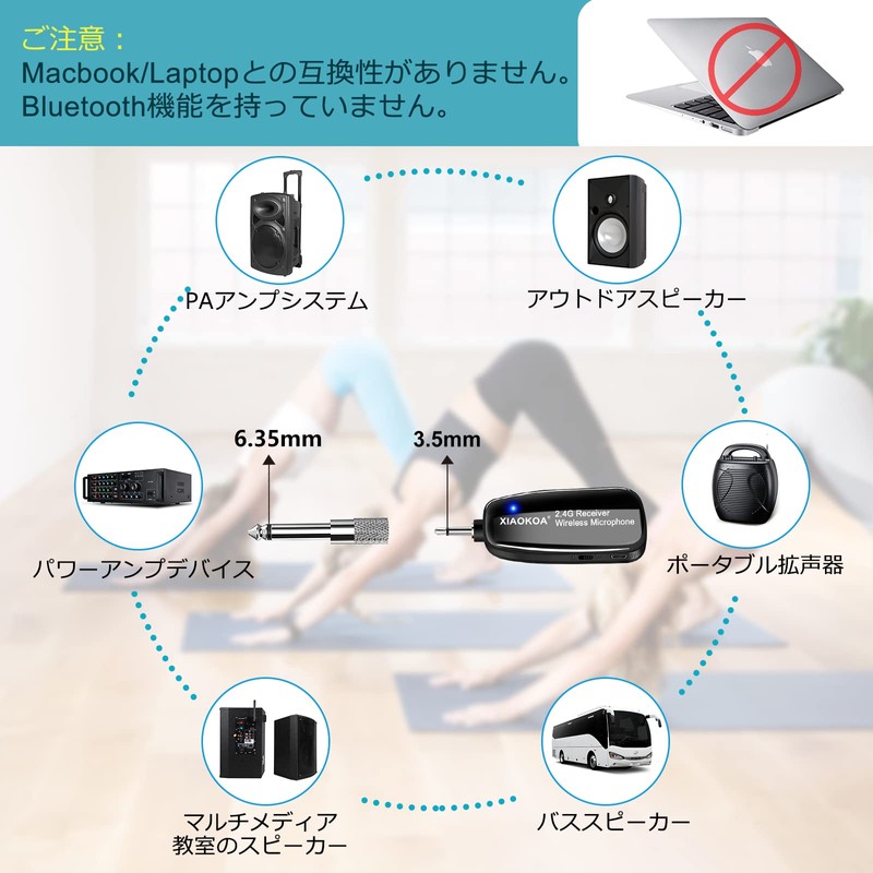 - 2.4G, Highly Compatible: This wireless microphone uses 2.4G transmission technology, which can reduce wireless interference to some extent. The signal transmits more stable within 30 meters. Comes with 6.35mm plug, compatible with PA devices with two types (3.5mm/6.35mm) jacks. Great for schools, conferences, meetings, lectures, classes, explanations, events, tourism guides, shop promotions, etc