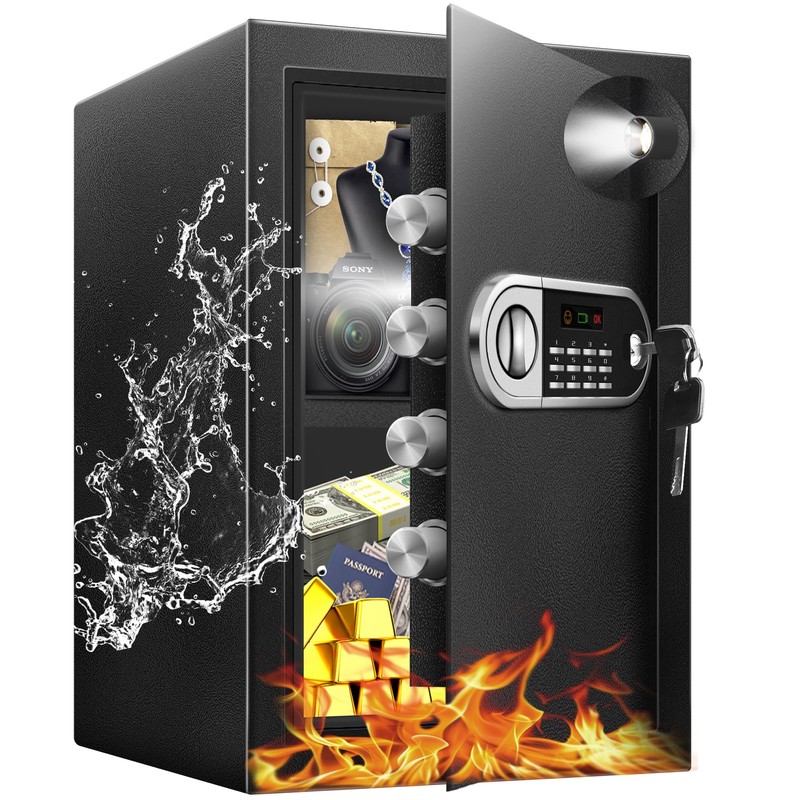 - YAYAG MD Safe Box for Home Documents, Safety Box with Electric Digital Keypad Combination Lock, Removable Shelf, LED Light, Anti-Theft Security Box 13.8x12.2x17.8 Inches, Black