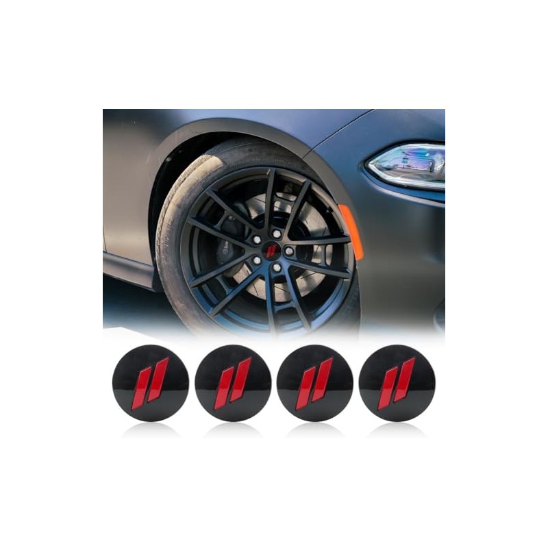 2.5 inches Slash Wheel Center Cap Covers Compatible with Dodge Charger Durango Dart 2015-2020 Jeep/Chrysler 4Pcs(Black&Red)