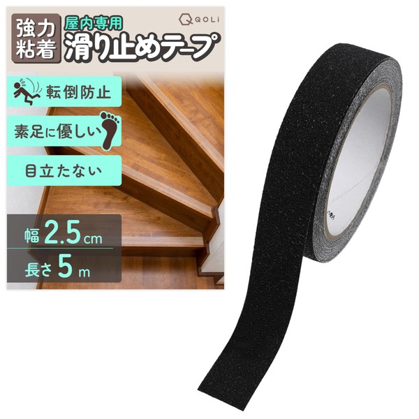 【内装専門 プロシリーズ】 階段 滑り止め 薄型 テープ 段差 転落防止 グリップ 素足に優しい 屋内専用 介護 高齢者 転倒防止 ペット 子供 安全対策 (ブラック, 幅2.5cm x 長さ5m)