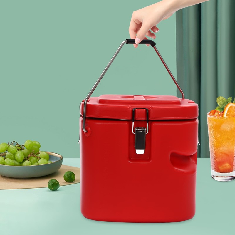 2.5gal Portable Commercial Food Warmer, Insulated Bucket Soup Container, Insulated Soup Carrier Coolers for Food Storage, Commercial Food Warmer Hot Box with Lids for Restaurants, Parties (Red)
