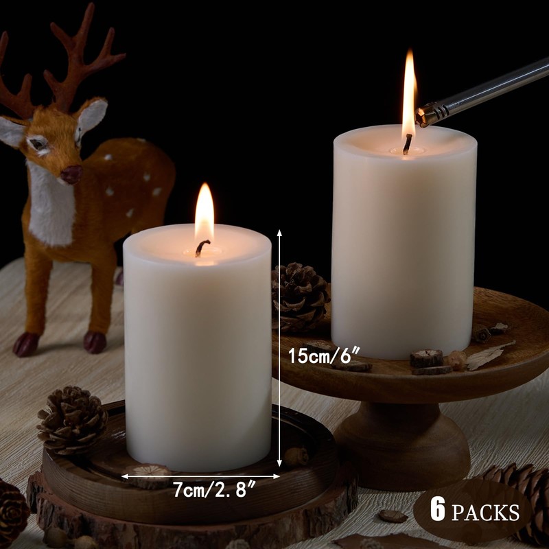 - 💗GREAT VALUE PACKS - Each White unscented pillar candle set comes with 6 counts candles of 2.8 x 6''.They come packed securely in a sturdy cardboard box.We choose not to use any fragrance and odors in our white pillar candle - we believe unscented pillar candles would suit for the most.