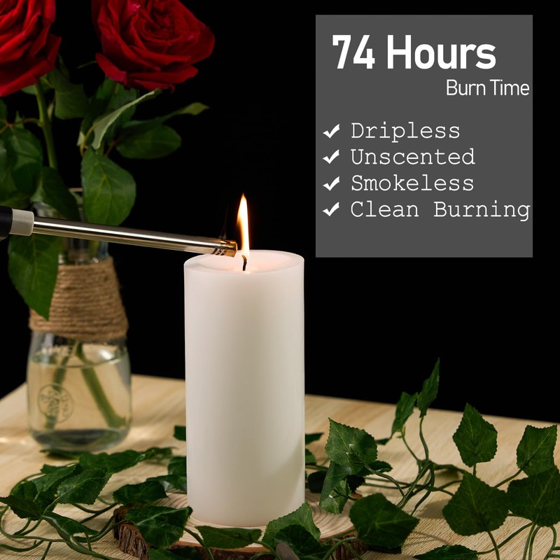 - 💗74 HOURS LONG BURNING TIME - Each candle with a burn time of approximately 74 hours and cylinder shape for efficient burning, you can make sure these candles will hold up through the duration of your event. Widely applied to Wedding table, Birthdays, Christmas decorations, home decorations, baby shower centerpieces, hotel spa candles, and even as religious candles.