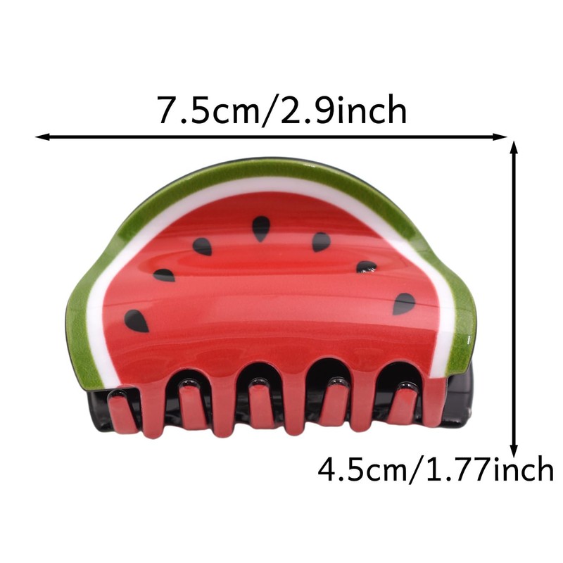 2.9" Vivid Fruit Print Hair Clips Hair Barrette Clips Cute Women Girls Medium Thinning Hair Accessories, Red Watermelon