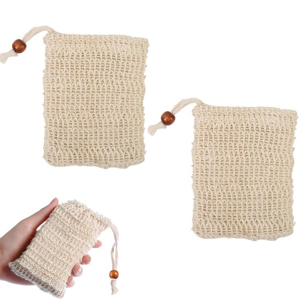 サムコス 泡立てネット 天然素材 綿麻 巾着袋 お風呂泡立て 石鹸節約 ドローストリング付き 洗顔 洗顔料用 (2個セット)