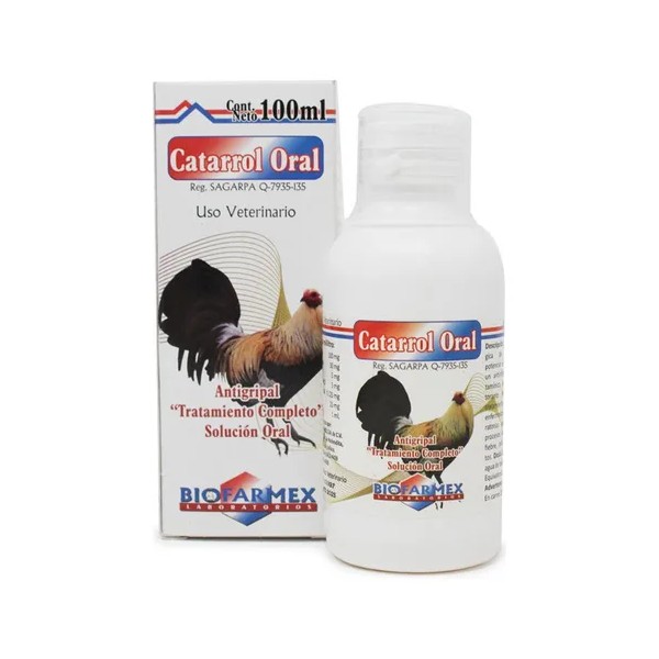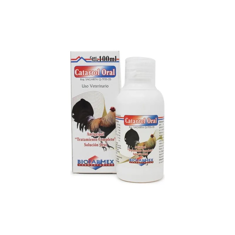 Catarrol Oral 100 mL x2 frascos de Bimap es un tratamiento eficaz para aves de combate, gallinas y pollos, indicado en infecciones respiratorias agudas o crónicas y padecimientos gastrointestinales.