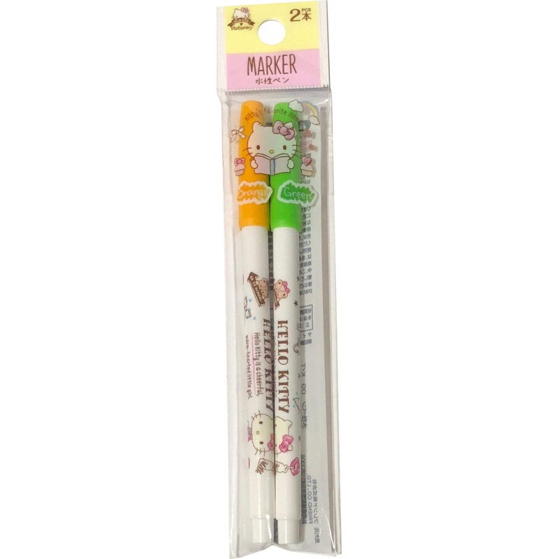 サンリオ ハローキティ 水性カラーペン 2本セット ステーショナリー(オレンジ、グリーン)